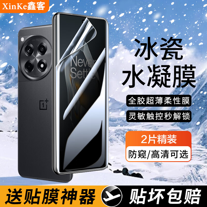 鑫客适用一加1+手机防窥膜水凝软膜曲面屏全覆盖非钢化全胶保护膜OPPO OnePlus 一加Ace3 【防窥冰瓷水凝膜】2片装+贴膜神器