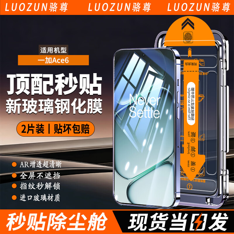 骆尊【秒贴神器】一加手机钢化膜秒贴除尘仓360度防窥膜全屏覆盖手机保护膜适用1+ 一加Ace6/Ace6T 除尘舱电镀高清款*2片装