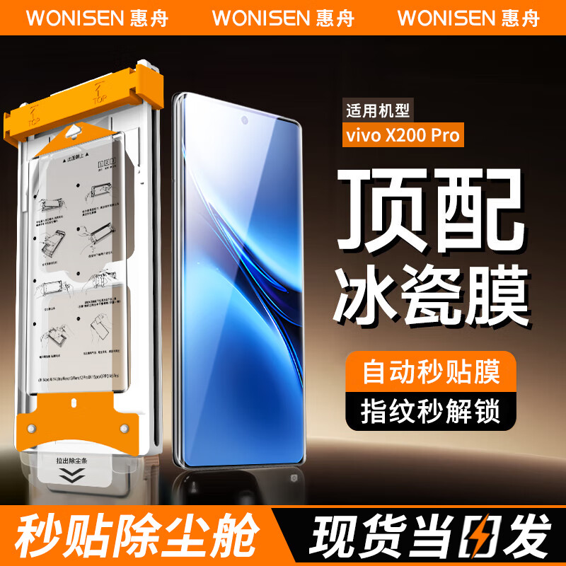 惠舟【新冰瓷全胶】vivo手机膜无尘仓热弯曲面全屏保护水凝微晶软膜秒贴适用 vivo X200 Pro AR冰瓷膜丨1片套装+定位秒贴舱