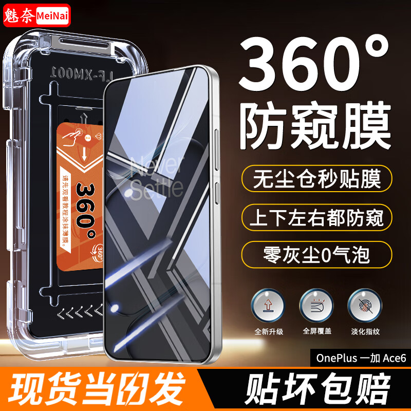 魅奈【新360度防窥】适用一加ace6钢化膜OnePlus 1+ 一加 Ace 6定位秒贴无尘仓上下左右防窥手机保护膜 360°四面防窥秒贴舱|1套装 OPPO 一加Ace6/T