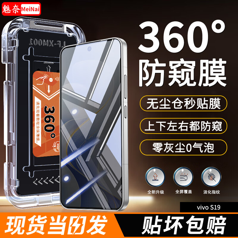 魅奈【新360度防窥】适用vivos19钢化膜vivo S19定位秒贴无尘仓上下左右防窥手机保护膜 360°四面防窥秒贴舱|1套装 vivoS19