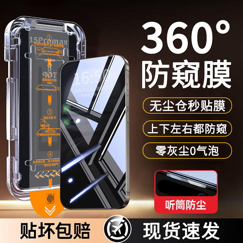 鑫客【360度防窥】适用苹果15/14/13/12钢化膜上下左右防窥膜Pro Max/plus全屏抗指纹听筒防尘网手机膜 360°防窥舱1套 | 一拉除尘+听筒防尘 苹果 iPhone 16 Pro
