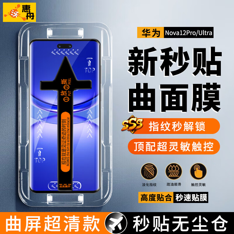 惠舟【秒贴无尘仓】华为nova12pro钢化膜曲面防窥膜12Ultra全屏覆盖手机膜防爆玻璃保护膜 曲屏超清款【顶配秒贴无尘仓】1片装 Hi/华为Nova12 Pro/12Ultra