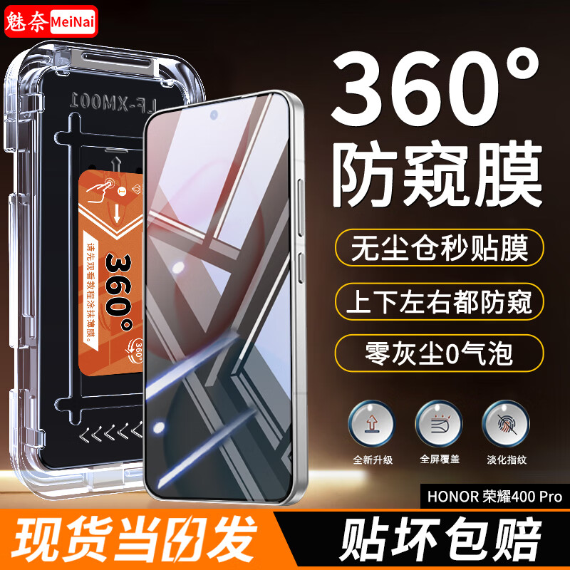 魅奈【新360度防窥】适用荣耀400/pro钢化膜荣耀400 Pro定位秒贴无尘仓上下左右防窥手机保护膜 荣耀400pro 360°四面防窥秒贴舱|1套装 荣耀400