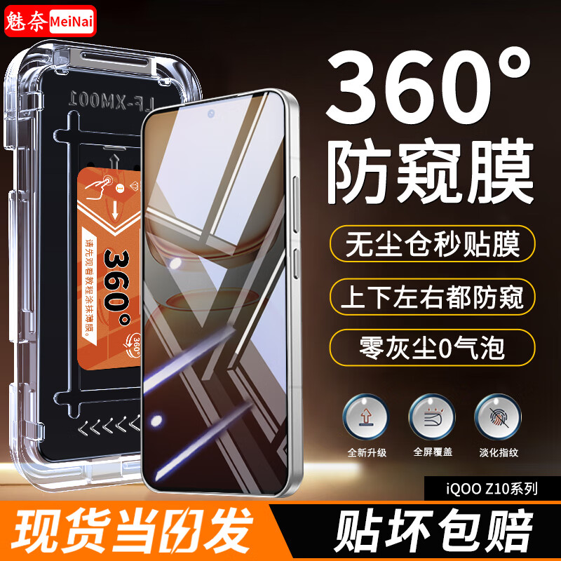 魅奈【新360度防窥】适用iqooz10Turbo钢化膜iQOO Z10 TurboPro定位秒贴无尘仓上下左右防窥手机保护膜 360°四面防窥秒贴舱|1套装 vivo iQOO Z10 Turbo/+/Pro