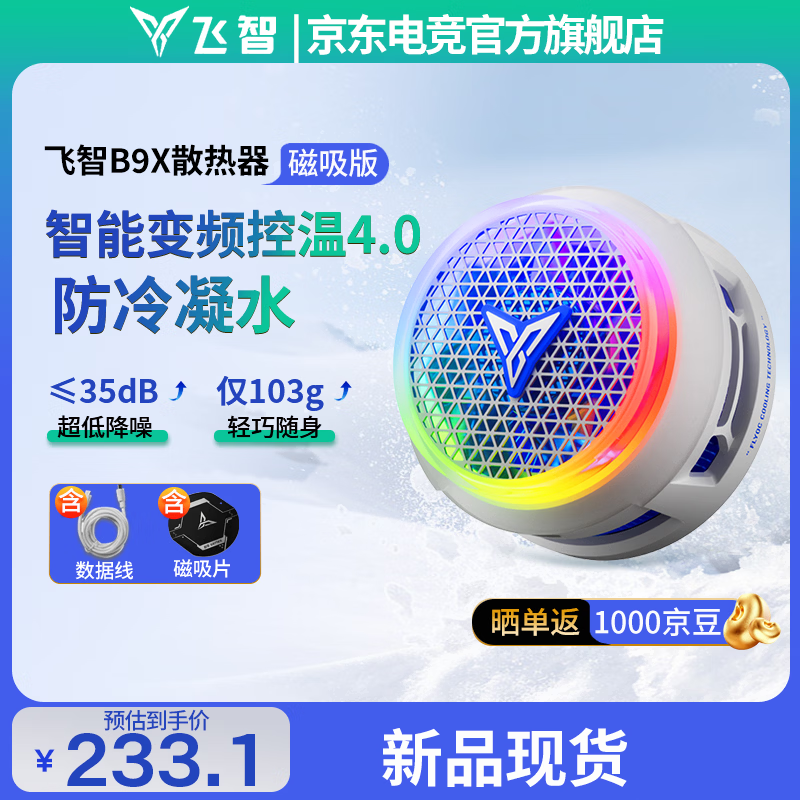 飞智B9X磁吸手机散热器 半导体吸风散热智能控温超低噪音DW32G吃鸡手游游戏直播平板降温神器 一加 B9X 散热器