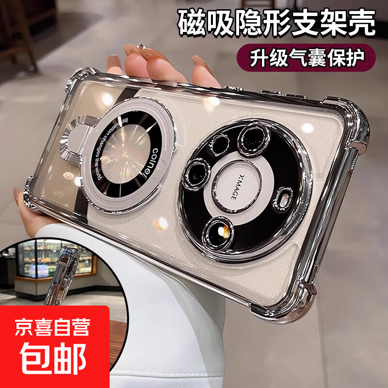 带支架适用华为mate70手机壳mate60pro新款透明气囊mate40pro高级感mt50镜头全包防摔por磁吸女套3 【白沙银】金属支架-气囊防摔-带镜头膜 华为Mate 70