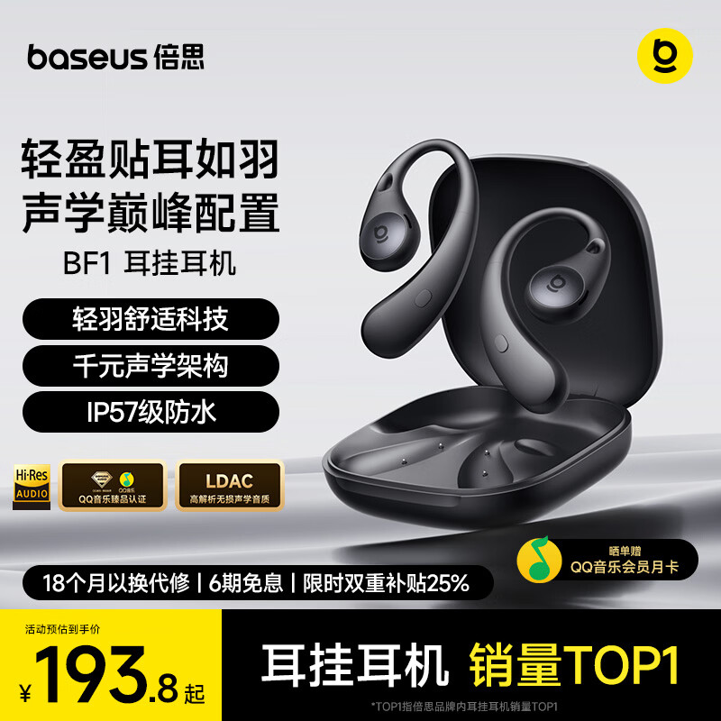 倍思【旗舰新品】BF1蓝牙耳机挂耳式开放式运动跑步长续航通话适用于苹果华为手机