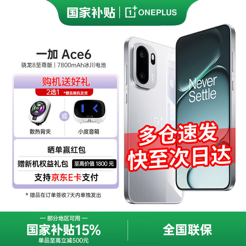 OPPO一加手机 新机2026热销 24期免息可选 Ace5 第三代骁龙 8 冰川电池 游戏AI智能5G手机 一加Ace6 全速黑【12GB+256GB】礼品13选2 官方标配【180天只换不修+三年质保+碎屏险】