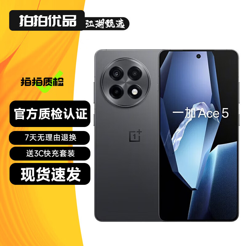 一加 Ace5 /Ace5Pro 二手5G手机 第三代骁龙8 风驰游戏内核 冰川电池AI游戏电竞手机 Ace5-全速黑【第三代骁龙8】 12GB+256GB 99成新