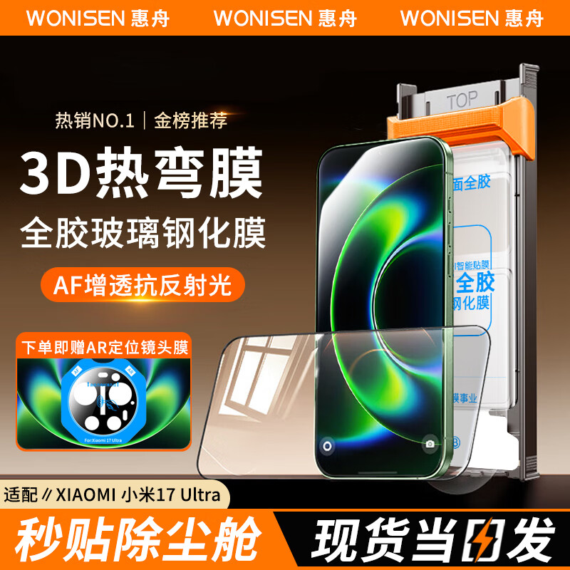 惠舟【3D热弯+AR抗反射】小米17ProMax钢化膜17pro/17Ultra/徕卡版手机膜无尘仓秒贴全胶防爆保护膜 小米 17 Ultra 3D热弯全胶丨AR增透丨1套装