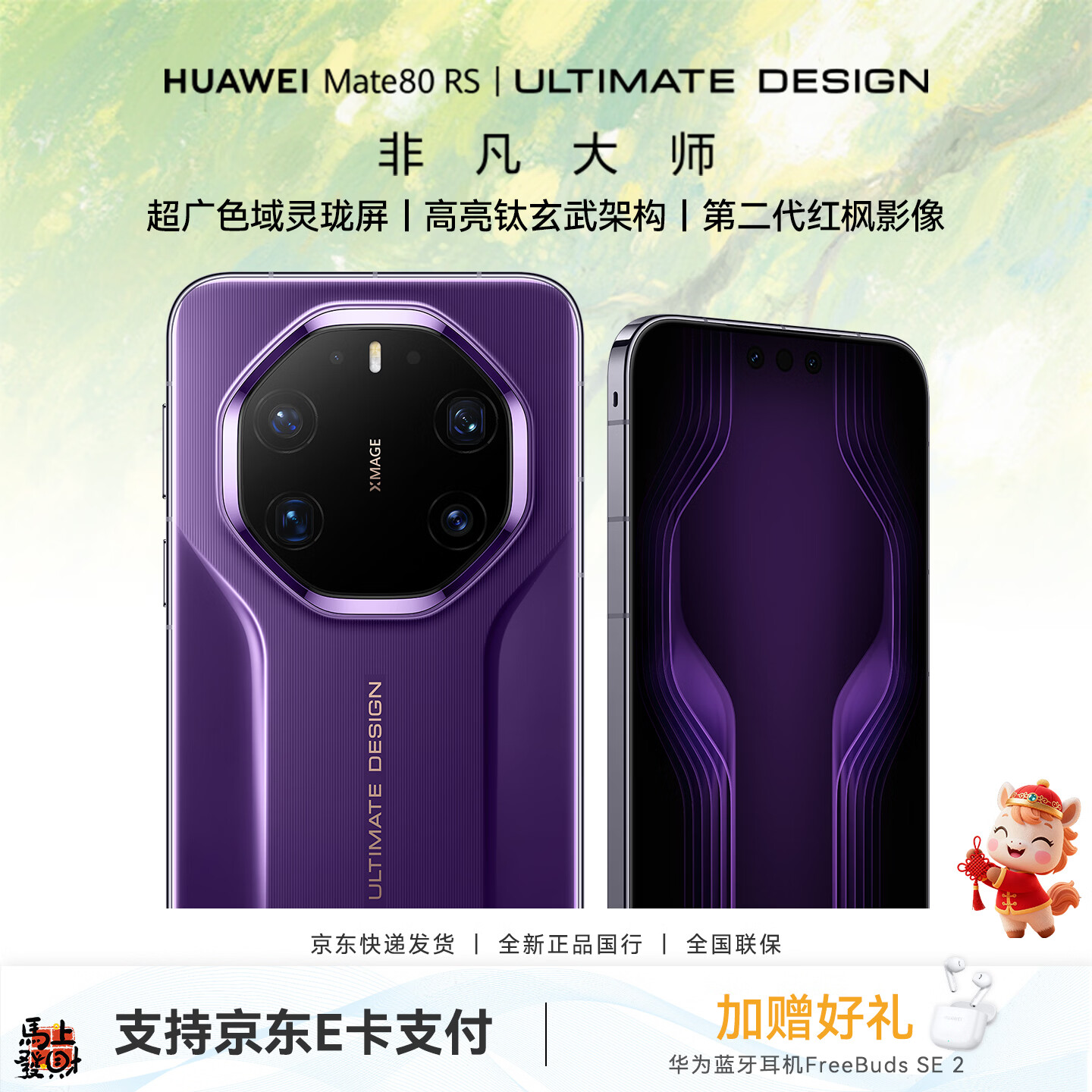 华为(HUAWEI)Mate 80 RS 非凡大师 手机 麒麟9030 Pro 芯片【全新正品国行+下单送华为无线耳机】卫星电话通信 槿紫 20GB+1TB