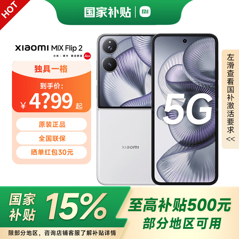 小米Xiaomi MIX Flip 2 国家补贴 5G折叠屏智能手机 小米小折叠 徕卡影像 新品手机 贝壳白 16GB+1TB 【官方标配】