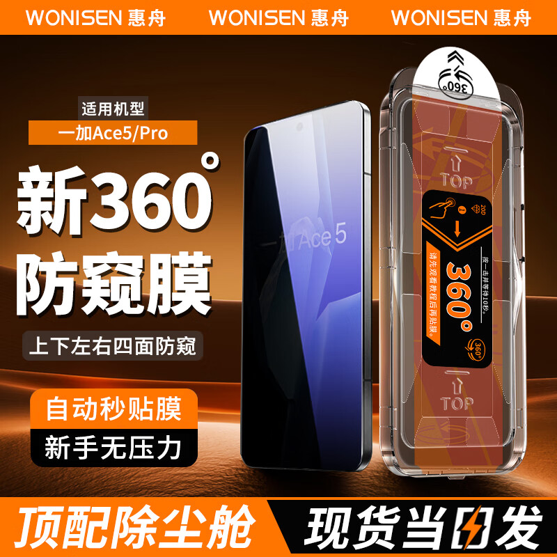 惠舟【360度防窥视】一加手机防窥钢化膜除尘秒贴无尘仓1+上下左右四面全屏隐私保护膜OnePlus 一加Ace5/Pro 360°防窥膜丨定位除尘舱1套装