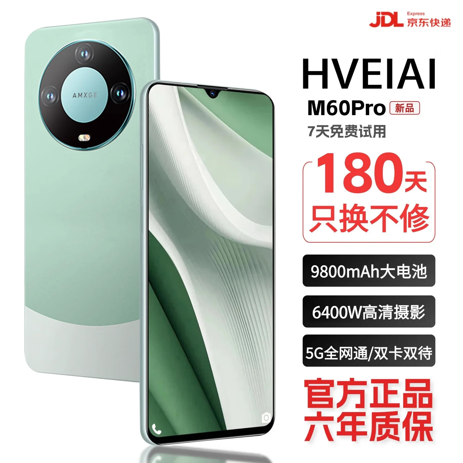 HVEIAI手机1TB大内存9800mAh快充长续航6400W高清像素 十面抗摔防水 学生电竞 老人AI智能全新原装 雅川青 16GB运行+128GB内存 官方标配