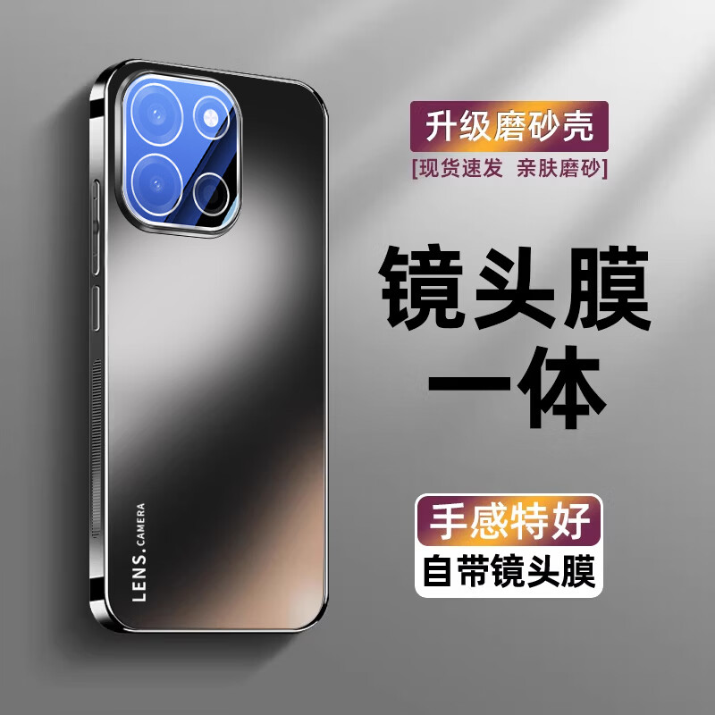 安幕适用一加turbo6手机壳新款电镀1加turbo6v保护套自带镜头膜全包防摔oneplus男女高级感1+简约奢华 旗舰款【石墨黑】防摔AG自带镜头膜 一加 Turbo 6