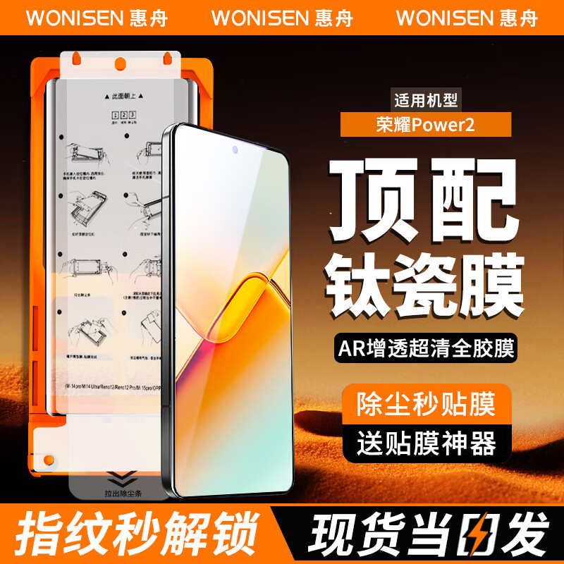 惠舟【指纹秒解锁】荣耀手机膜全胶防窥膜曲面全屏保护陶瓷水凝热弯软膜适用 荣耀Power2 防窥解锁版1片装【配神器】
