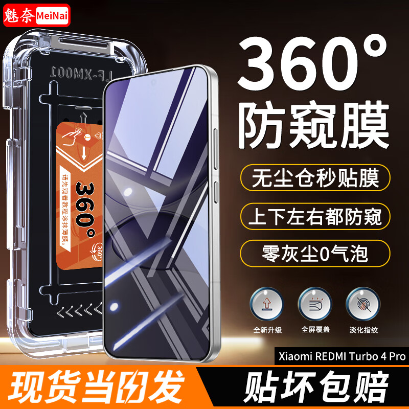 魅奈【新360度防窥】适用红米turbo4pro钢化膜红米 Turbo 4 Pro定位秒贴无尘仓上下左右防窥手机保护膜 360°四面防窥秒贴舱|1套装 小米 REDMI Turbo 4 Pro