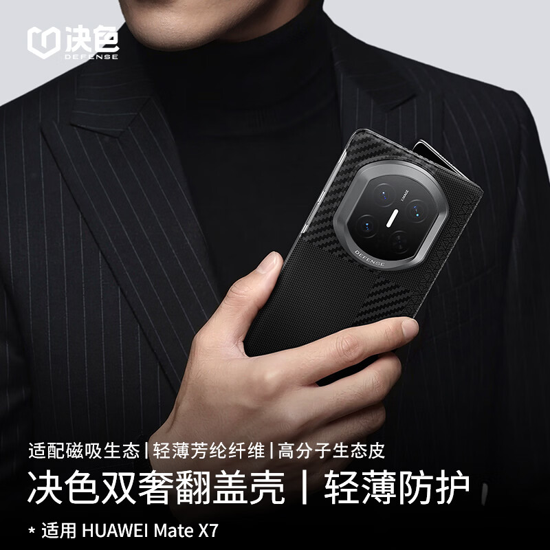 决色 适用于华为mateX7手机壳凯夫拉全包翻盖芳纶纤维双奢智能视窗Matex6保护套磁吸 0重力™双奢-1号 | 磁吸翻盖 华为Mate X6/典藏版【蒙德背板】【皮前盖】