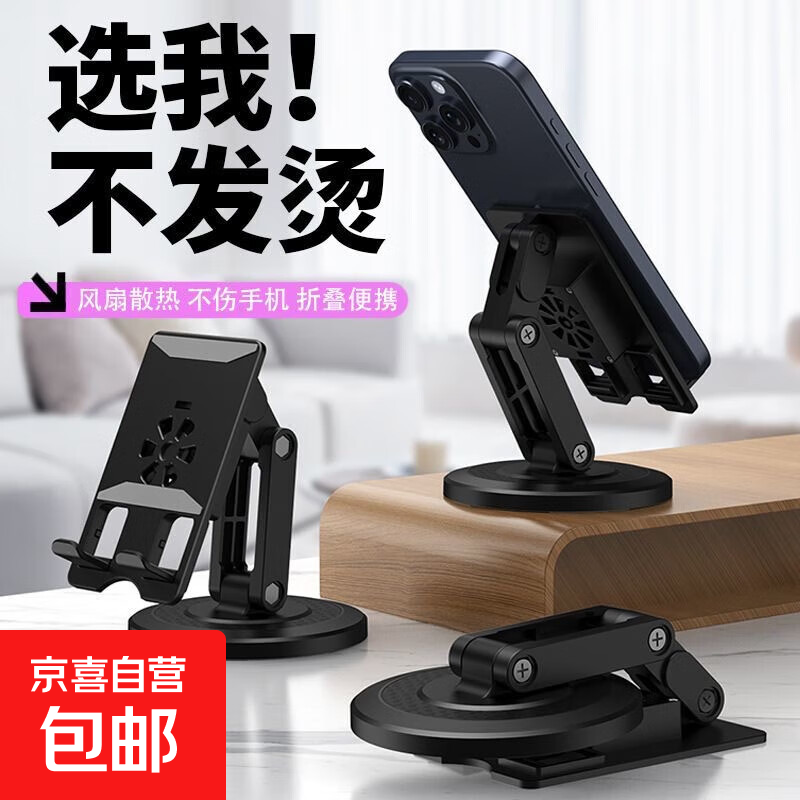 手机散热支架 指套电竞手机支架自带散热器桌面摆件叠风扇手机支架降温手机散热神器 苹果红魔飞智 黑色1个 风扇散热支架