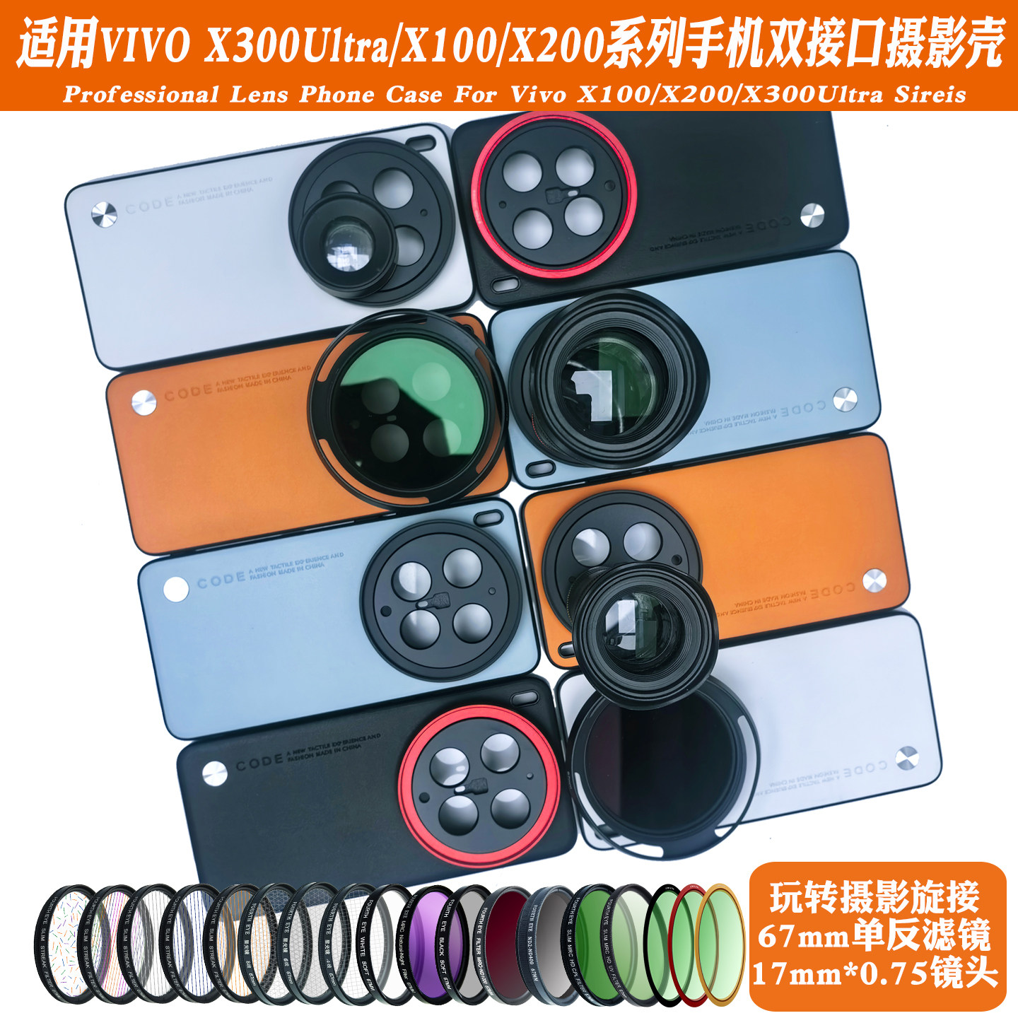 适用vivoX300ultra/X200/X100X系列17mm螺纹手机壳 外接长焦微距人像减光黑柔CPL偏振摄影套装67mm滤镜保护盖