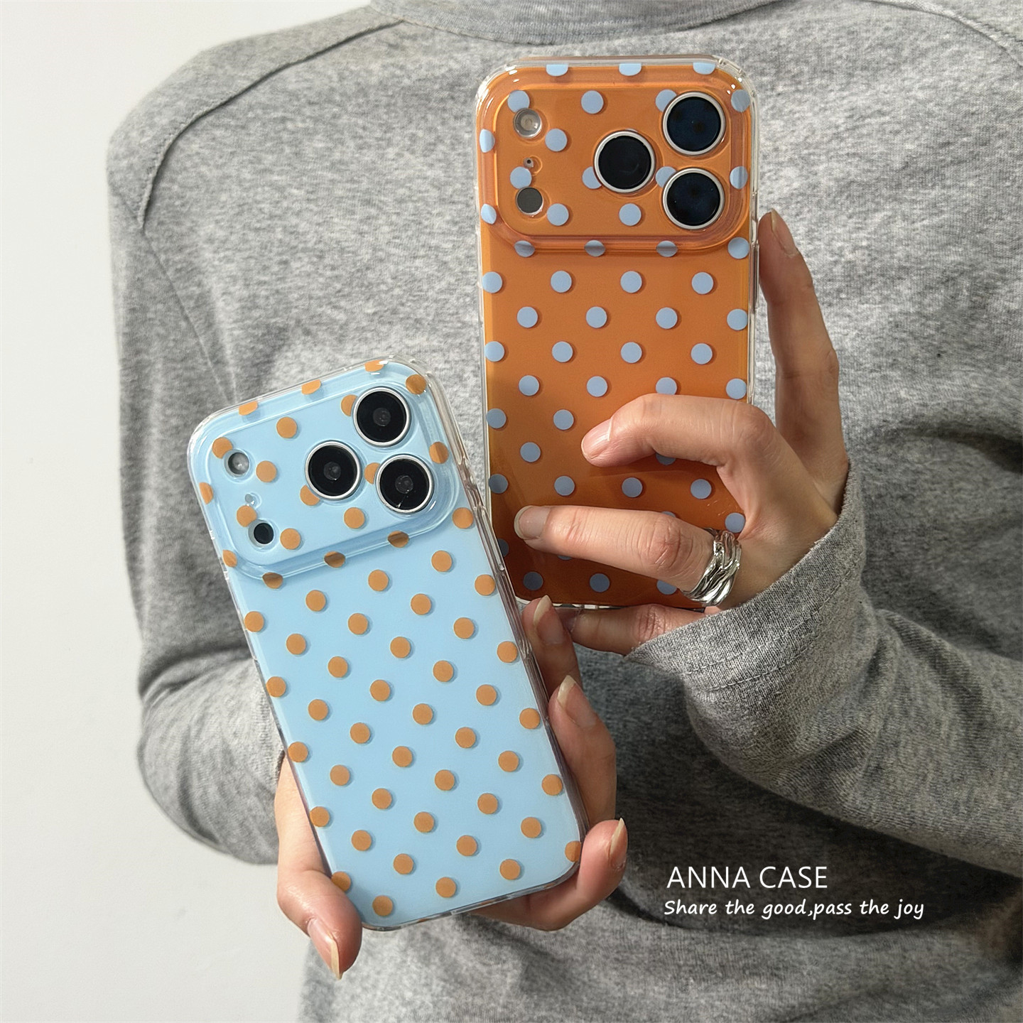 ANNACASE春日ins简约清透蓝橘色波点手机壳适用iphone17promax苹果17新款15pro全包16Promax防摔保护套14女款