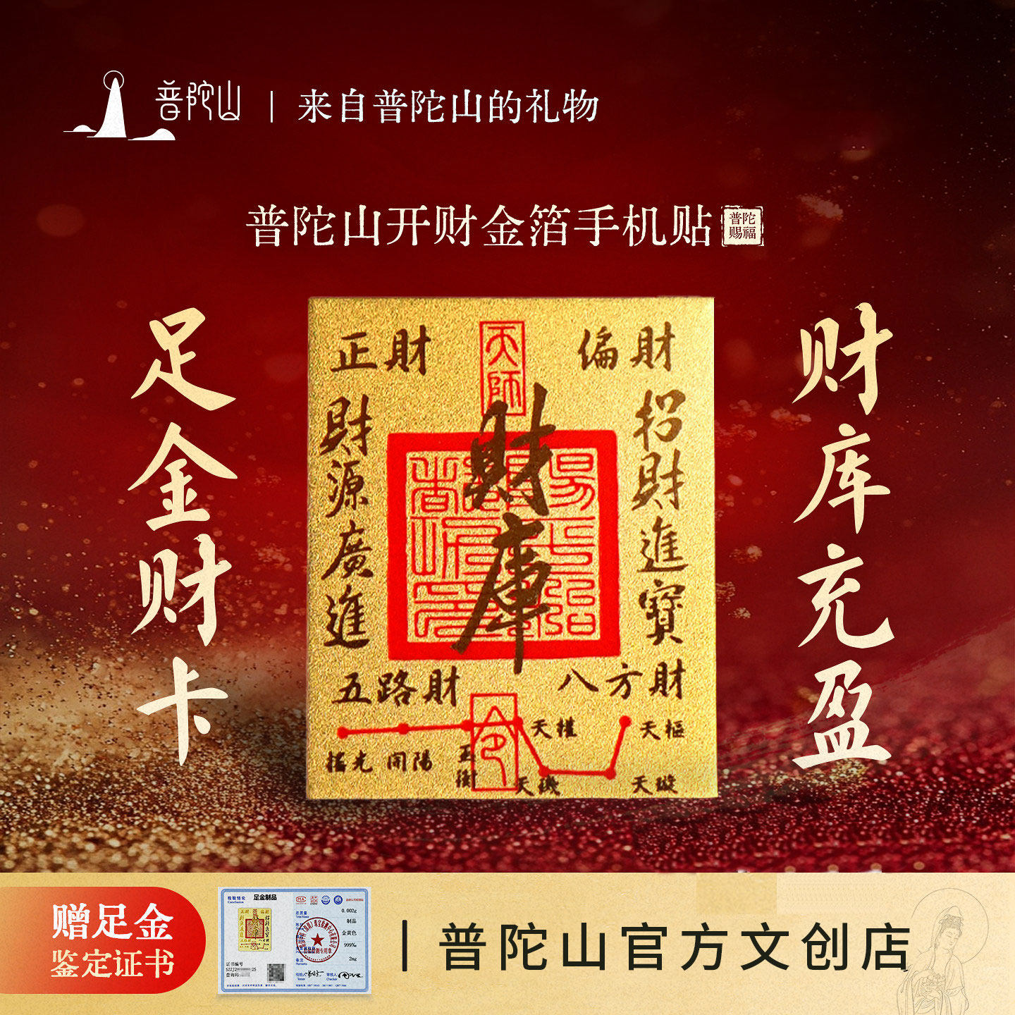 【热销】普陀山足金999财库黄金手机后背贴招财真金箔本命年护身
