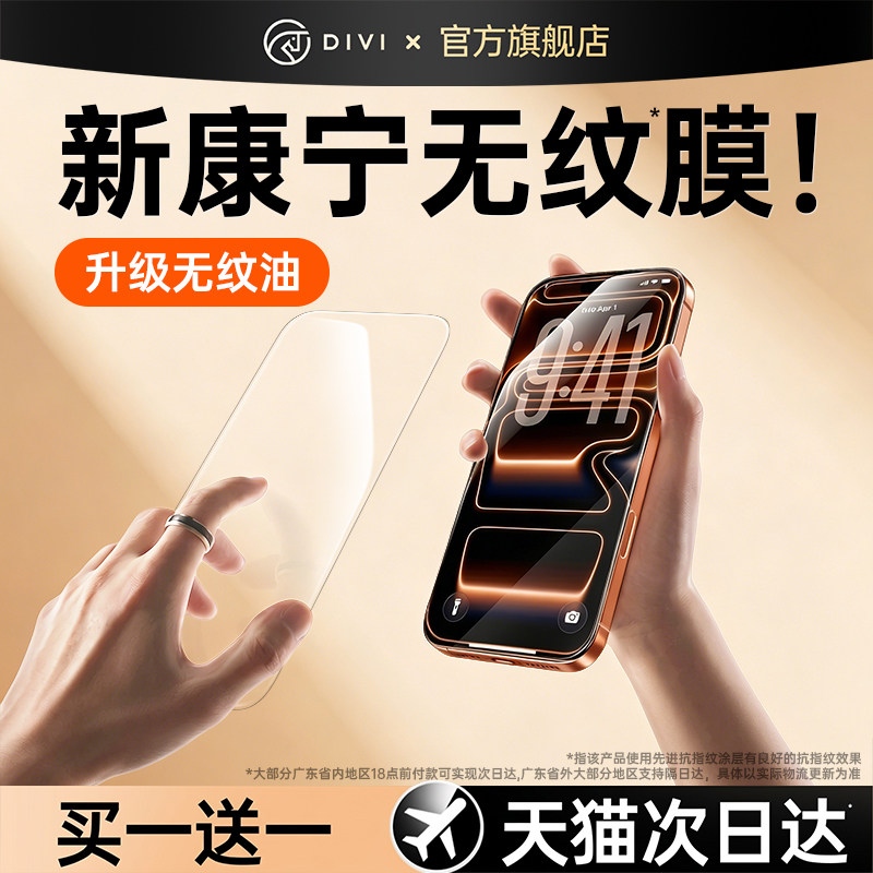 [康宁无纹]第一卫适用苹果17ProMax钢化膜iPhone16pro手机膜15贴膜14plus全屏覆盖13高清12防摔保护11新防窥X