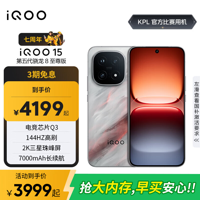 vivoiQOO15手机 第五代骁龙8至尊版 自研电竞芯片Q3 2K三星珠峰屏 新品5G 学生游戏电竞手机 凌云 12GB+256GB 官方标配【全国补贴】