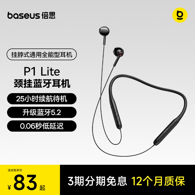 倍思P1颈挂式蓝牙耳机运动挂脖长续航游戏音乐跑步专用无线降噪耳机适用于苹果华为vivo手机礼物