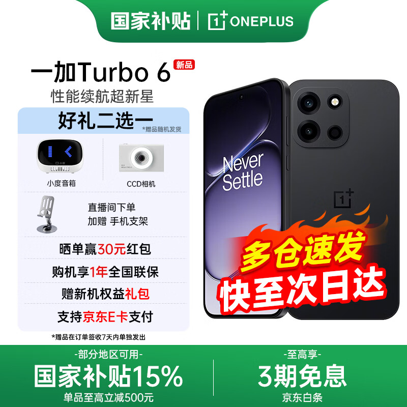 一加 Turbo 6【国家补贴】165超高刷 电竞三芯 9000mAh冰川电池 OPPO AI 5G手机 独行黑 12GB+256GB 官方标配【国家补贴】