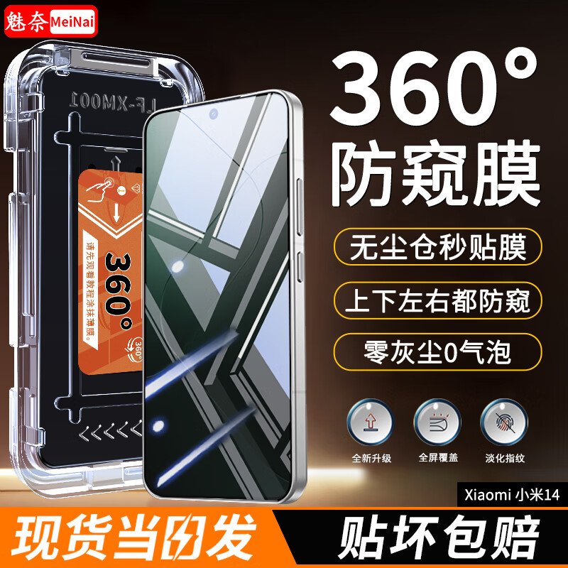 魅奈【新360度防窥】适用小米14钢化膜23127PN0CC定位秒贴无尘仓上下左右防窥手机保护膜 360°四面防窥秒贴舱|1套装 小米14