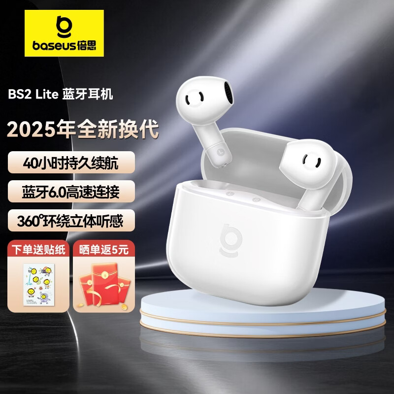 倍思E3升级2025年新款BS2 Lite半入耳真无线蓝牙耳机蓝牙6.0运动耳麦低延迟适用苹果华为荣耀oppo手机 【2025新品升级款】皓月白