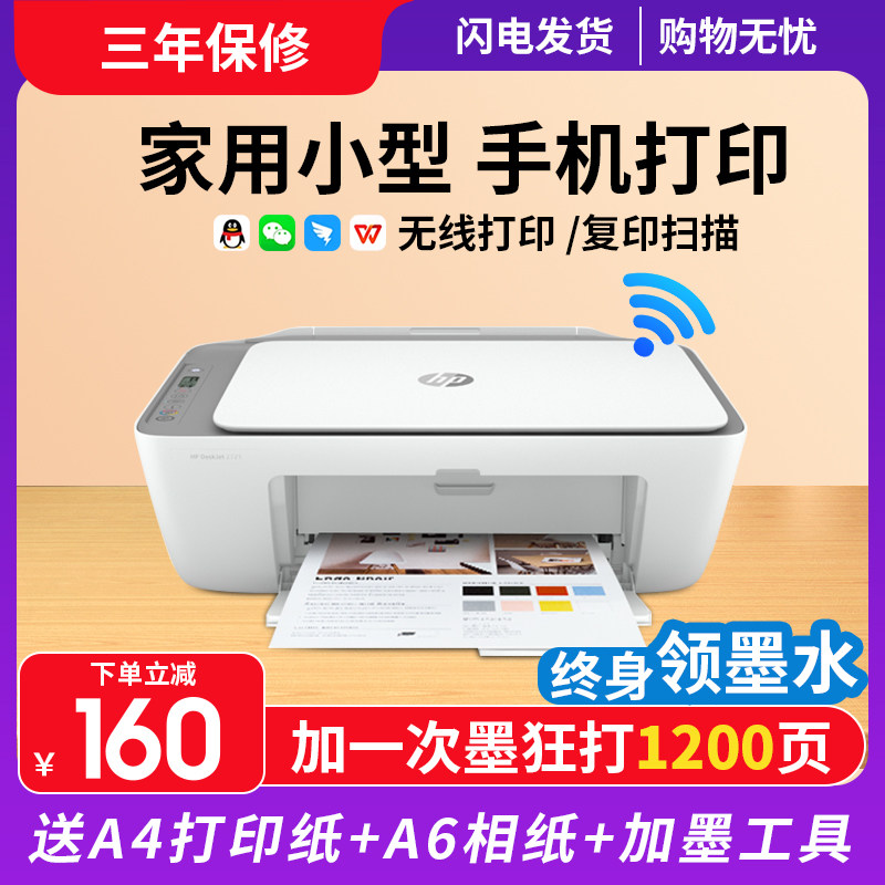 惠普家用小型学生打印机手机无线办公专用彩色照片扫描复印一体机