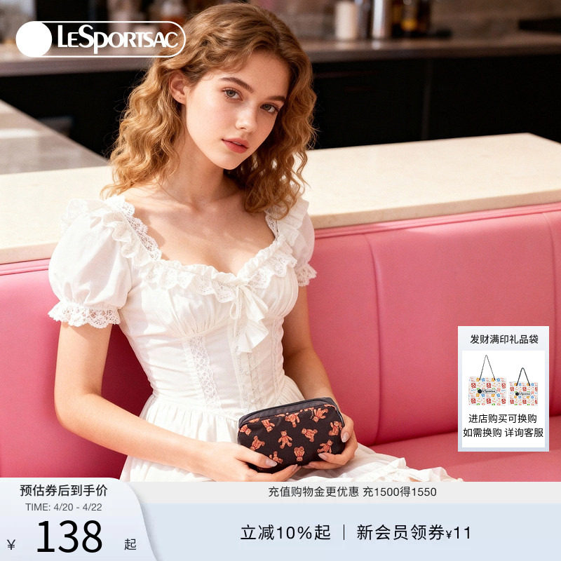 LeSportsac乐播诗秋冬新款经典系列咖色满印泰迪熊手机包女手拿包