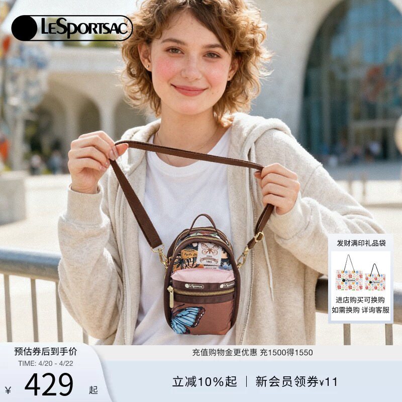 LeSportsac乐播诗新款蝴蝶邮票系列温柔复古风休闲手机包女斜挎包