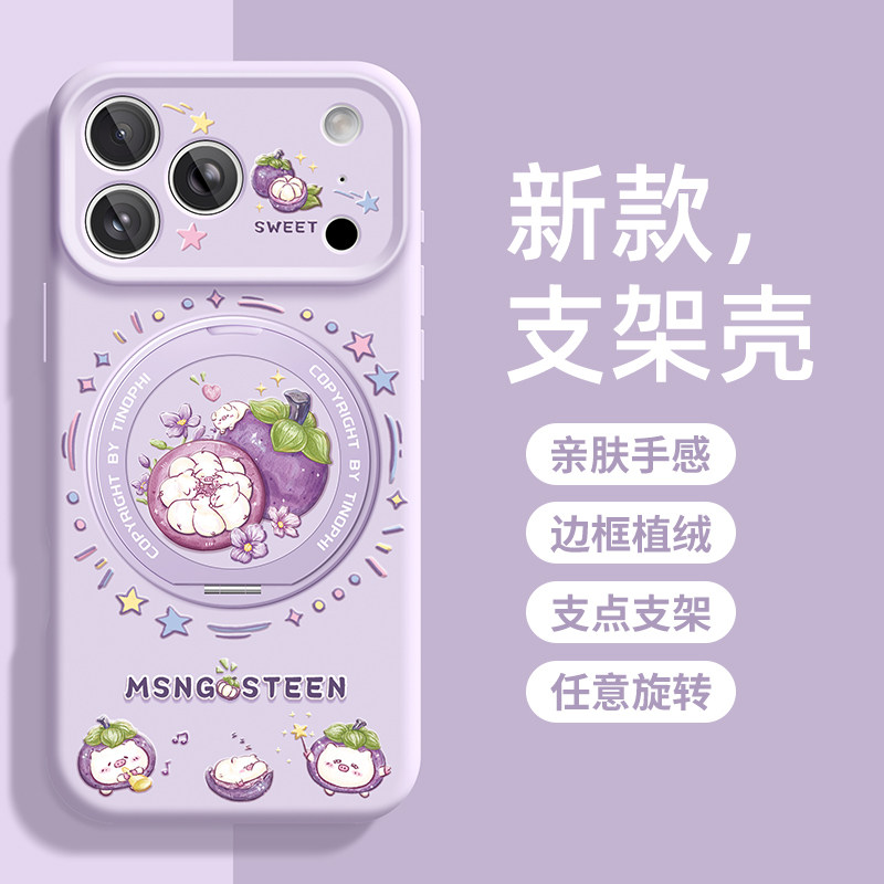 适用苹果17promax手机壳新款iphone16保护套液态硅胶iphone15带支架超薄防摔ip14山竹全包小猪17por支点外壳