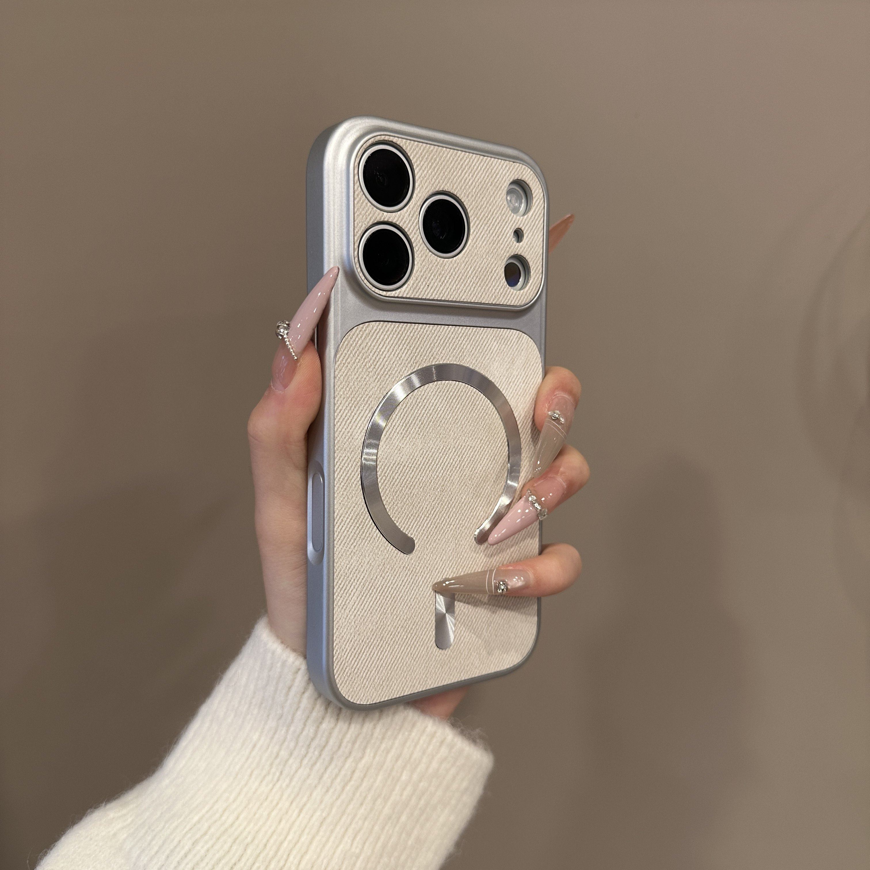 轻奢极光圈适用苹果17promax磁吸手机保护壳秒变iPhone16大视窗15/14PM牛仔布纹ip13/12Pro全包防摔11磨砂保