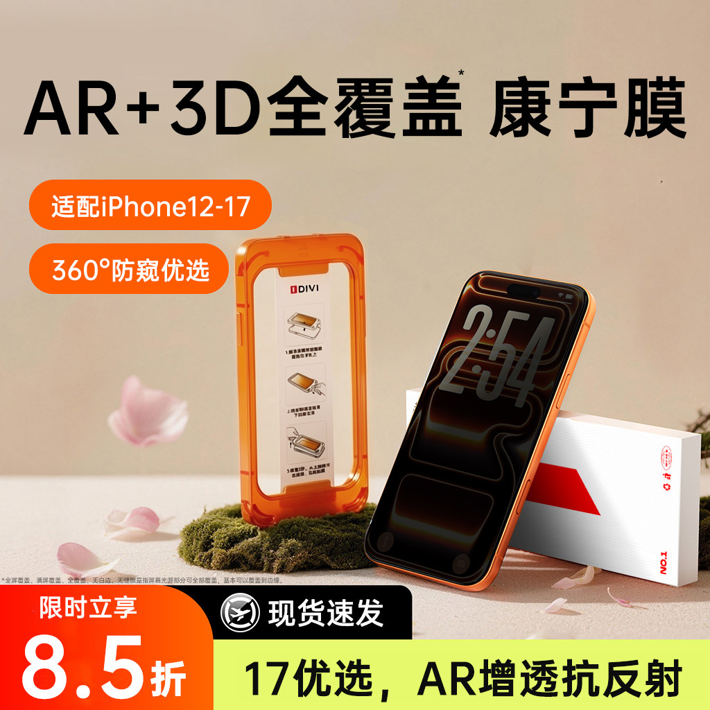 【AR抗反射】第一卫适用iphone17promax钢化膜苹果17air/16pro防窥膜15手机膜14无黑边13贴膜12全屏护眼防摔
