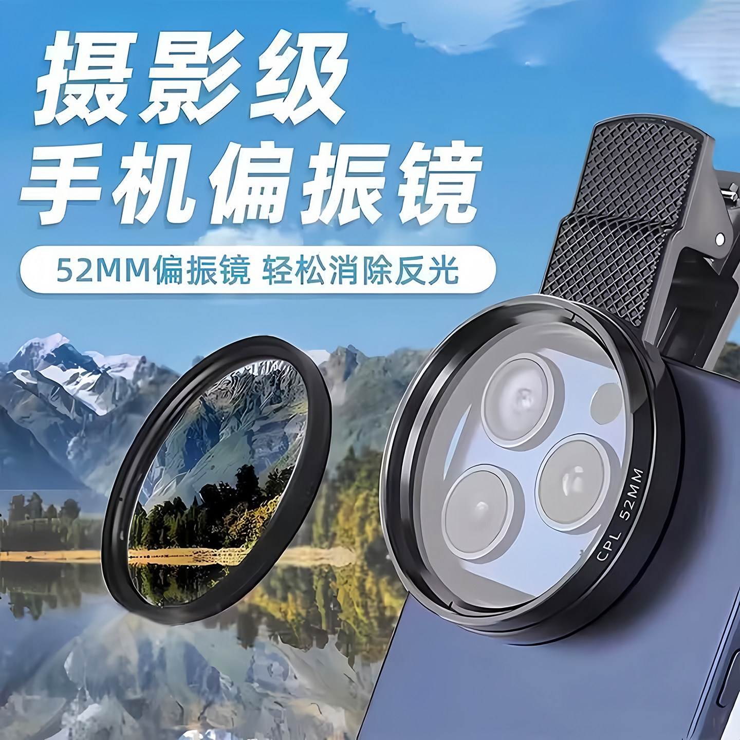 手机偏振镜专用摄影滤镜拍照高清专业cpl偏光镜通用52mm辅助拍摄