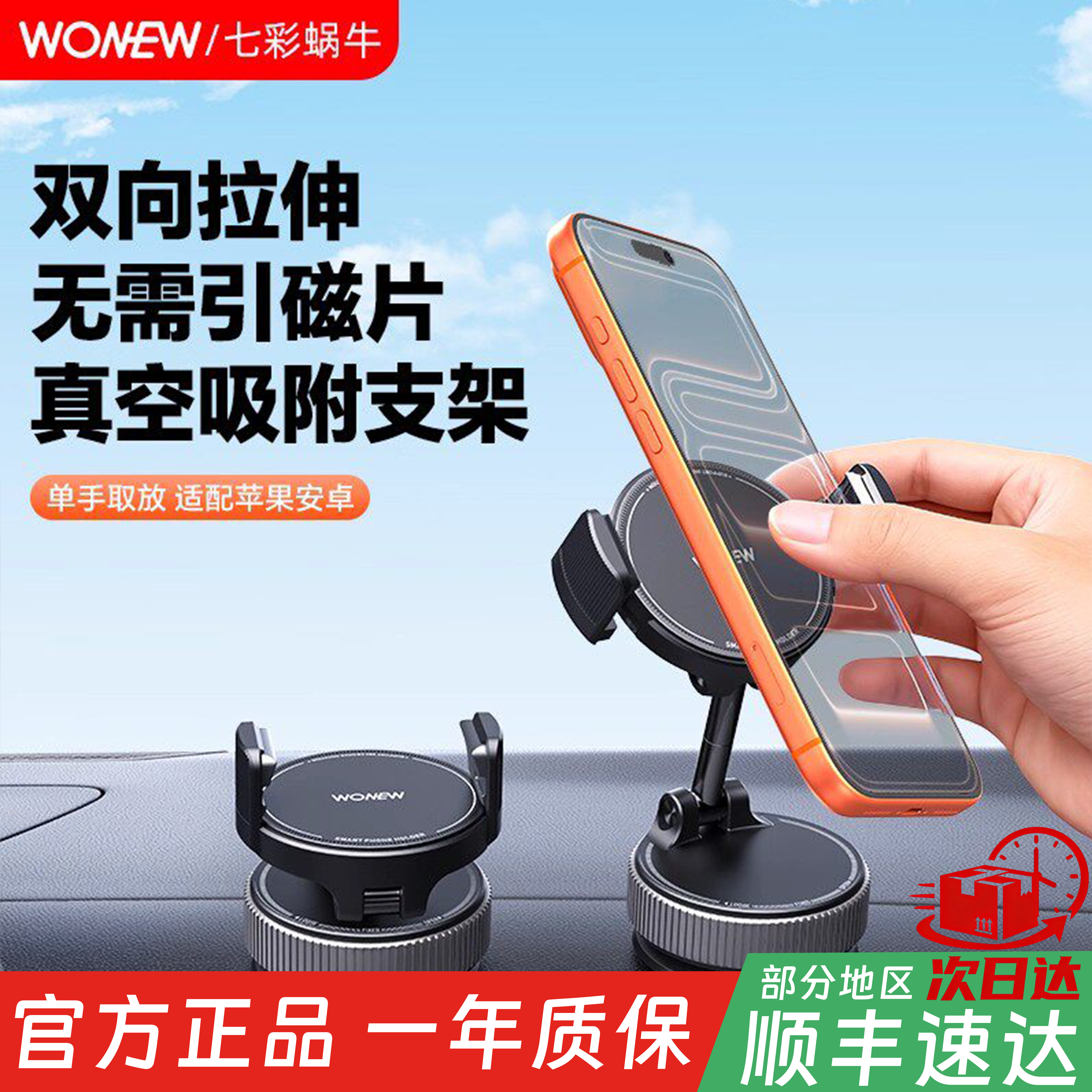 wonew七彩蜗牛吸盘式磁吸支架夹子车载手机自拍折叠吸附手机架