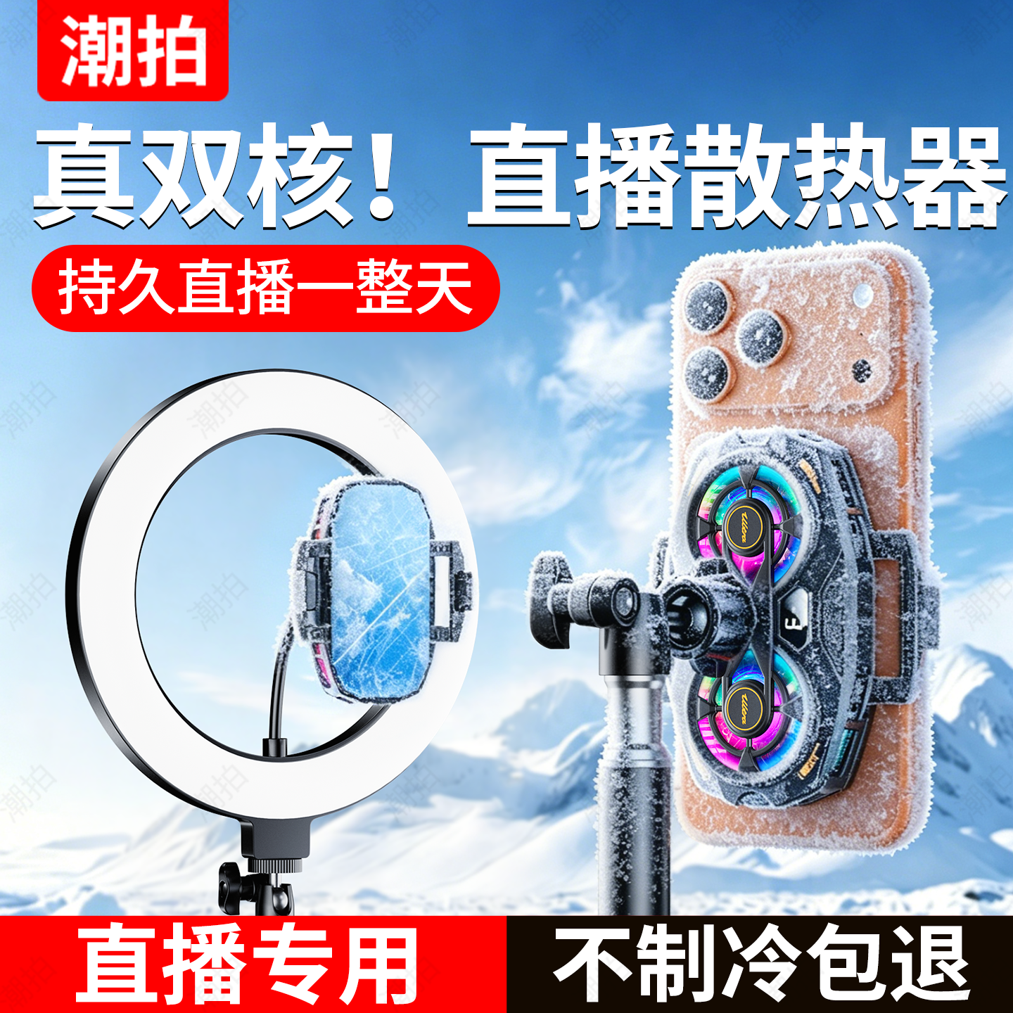 【直播专用】手机散热器制冷超静音带支架补光灯主播全套设备半导体降温神器适用苹果一体背夹风扇手机架