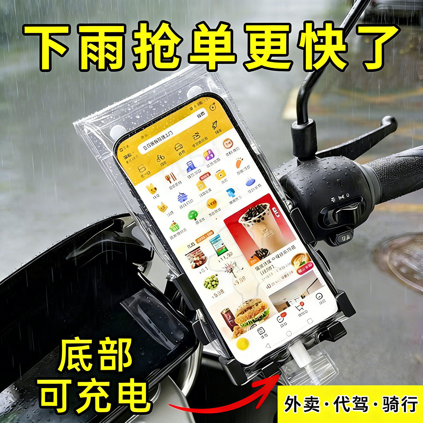 骑手新款通用手机防水袋外卖专用可充电放夹支架触屏充电防雨加厚