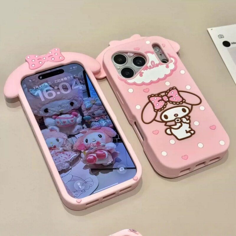 超可爱软萌爱心蝴蝶结美乐蒂适用苹果17promax手机壳iPhone16plus大孔15pro硅胶13防指纹14肤感12可爱防摔11