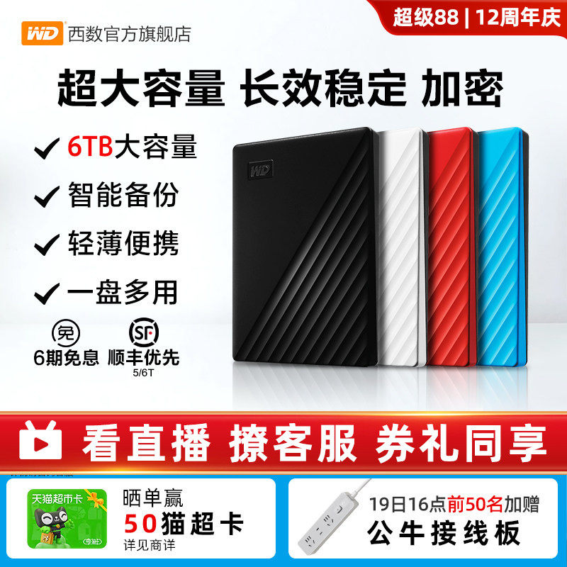WD西部数据移动硬盘6t正品 加密电脑大容量外置手机机械高速存储
