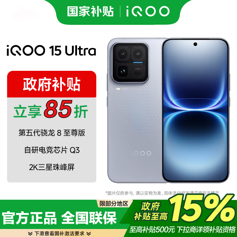 vivo iQOO 15 Ultra 国家补贴 第五代骁龙 8 至尊版 自研电竞芯片 Q3 2K三星珠峰屏 学生电竞游戏手机 2049(银色) 16+512GB 官方标配