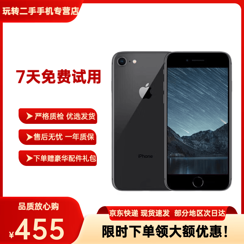 Apple苹果8 苹果8puls 靓机 二手苹果手机 国行全网通 苹果8【深空灰】 64G【颜色电池效率随机+豪华大礼包】7成新