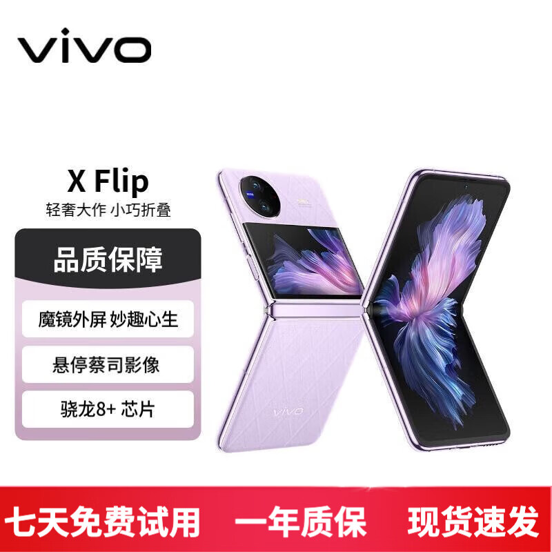 vivo X Flip 5G折叠屏手机 优雅设计 魔镜大外屏 悬停蔡司影像 骁龙8+ 芯片 二手手机 菱紫 12GB+512GB 99新