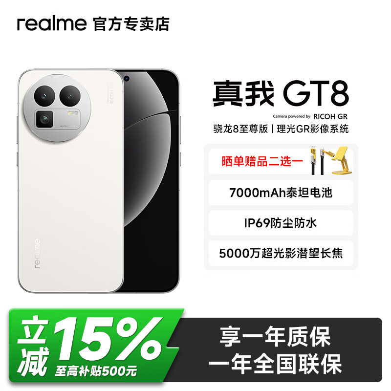 真我(realme) OPPO真我 GT8 国补 理光GR影像系统 第五代晓龙8至尊处理器 智能AI游戏拍照5G电竞手机 怀特·白色 12GB+512GB