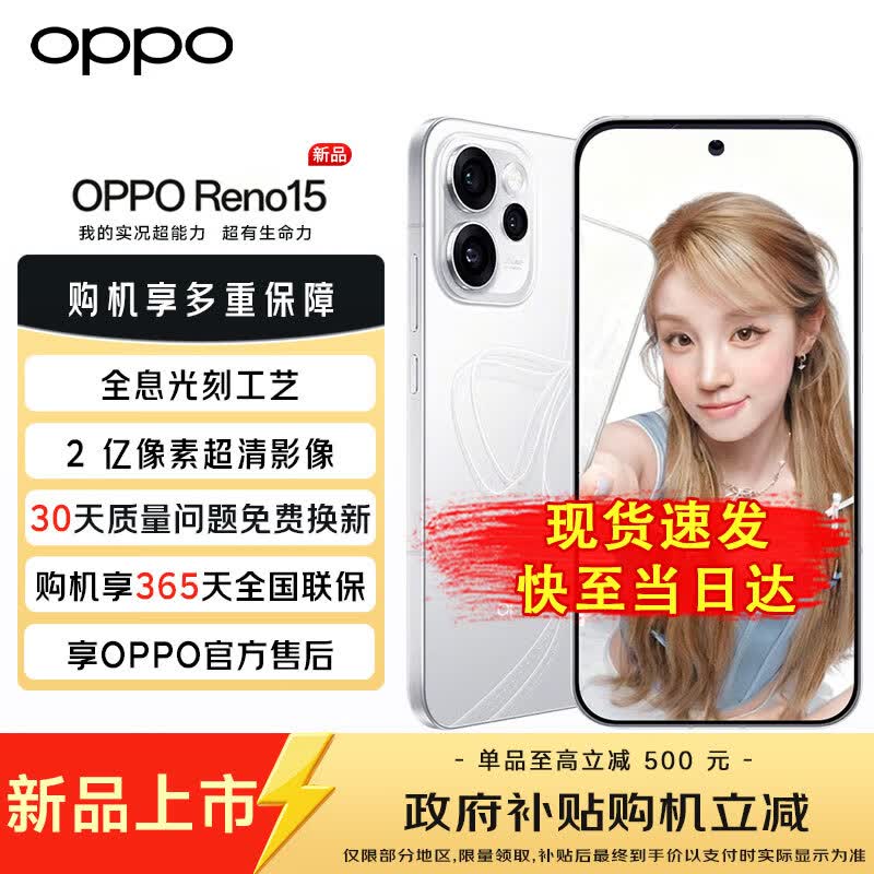 OPPO【政府补贴】OPPO Reno 15 星光蝴蝶结 2亿像素超清影像 满级防水 超出圈实况 AI拍照手机reno15 星光蝴蝶结 16GB+512GB
